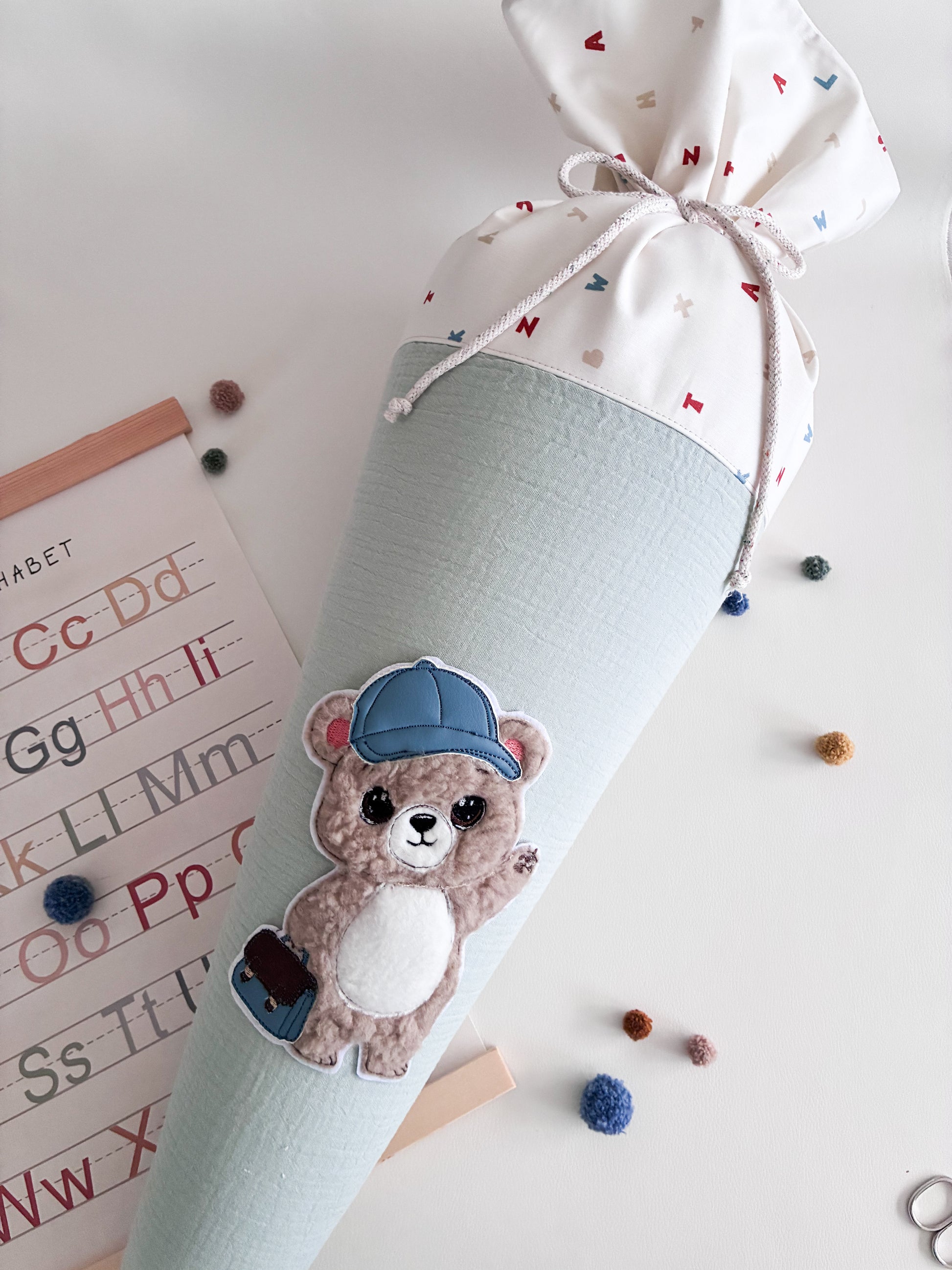 Feiere den großen Tag der Einschulung mit unserer einzigartigen Schultüte im Bären Design.