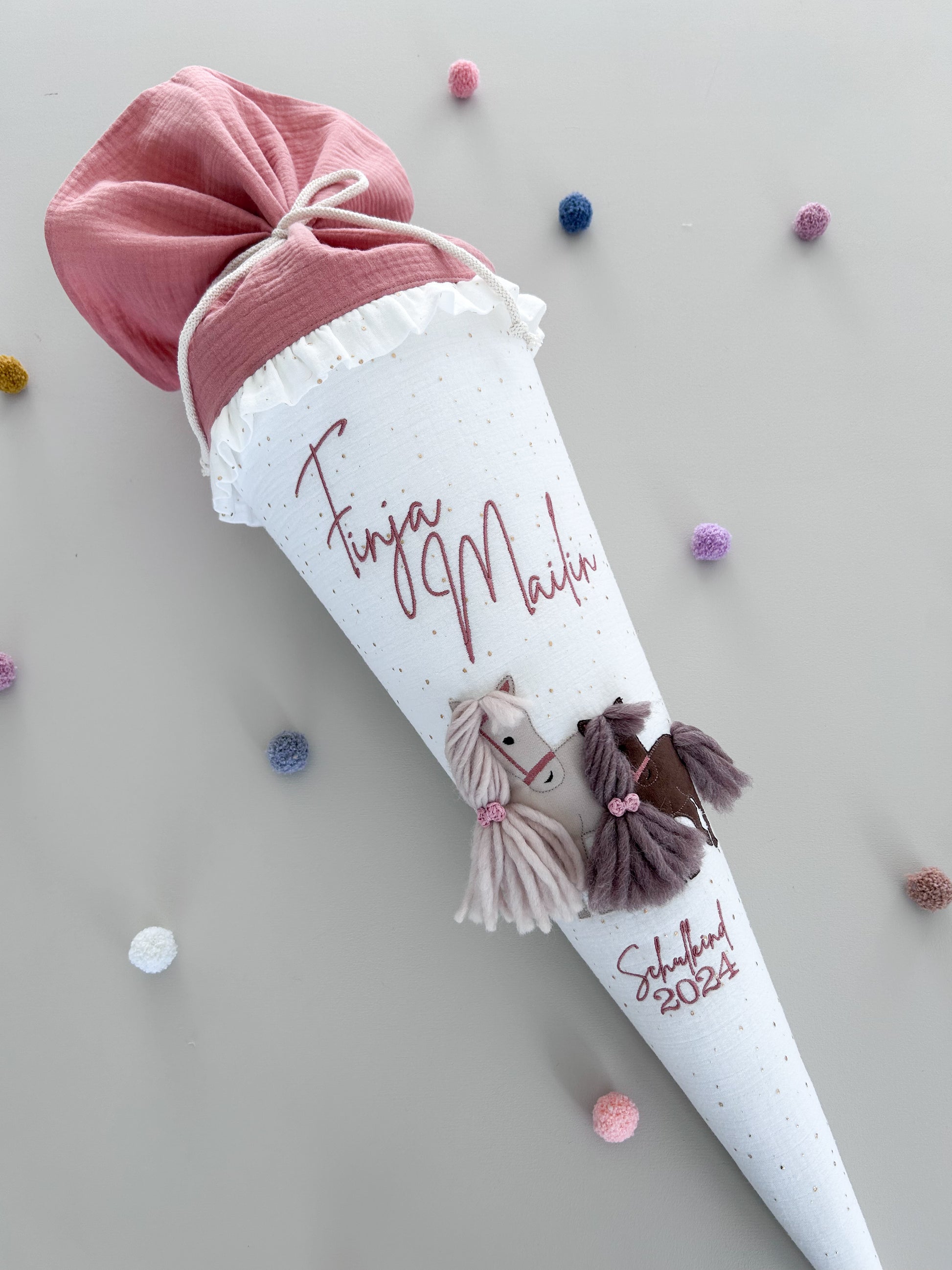 Feiere den großen Tag der Einschulung mit unserer einzigartigen Schultüte mit 2 Pferdchen.