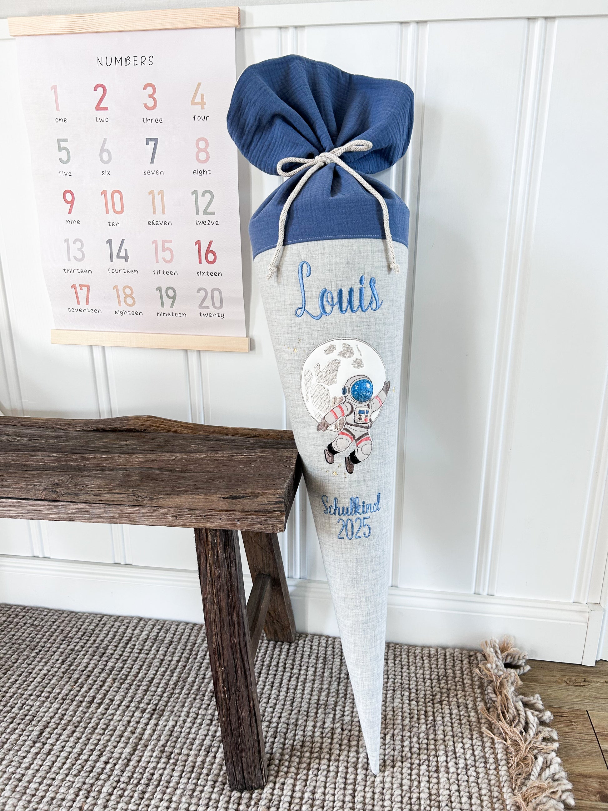 Feiere den großen Tag der Einschulung mit unserer einzigartigen Schultüte im Astronauten Design.