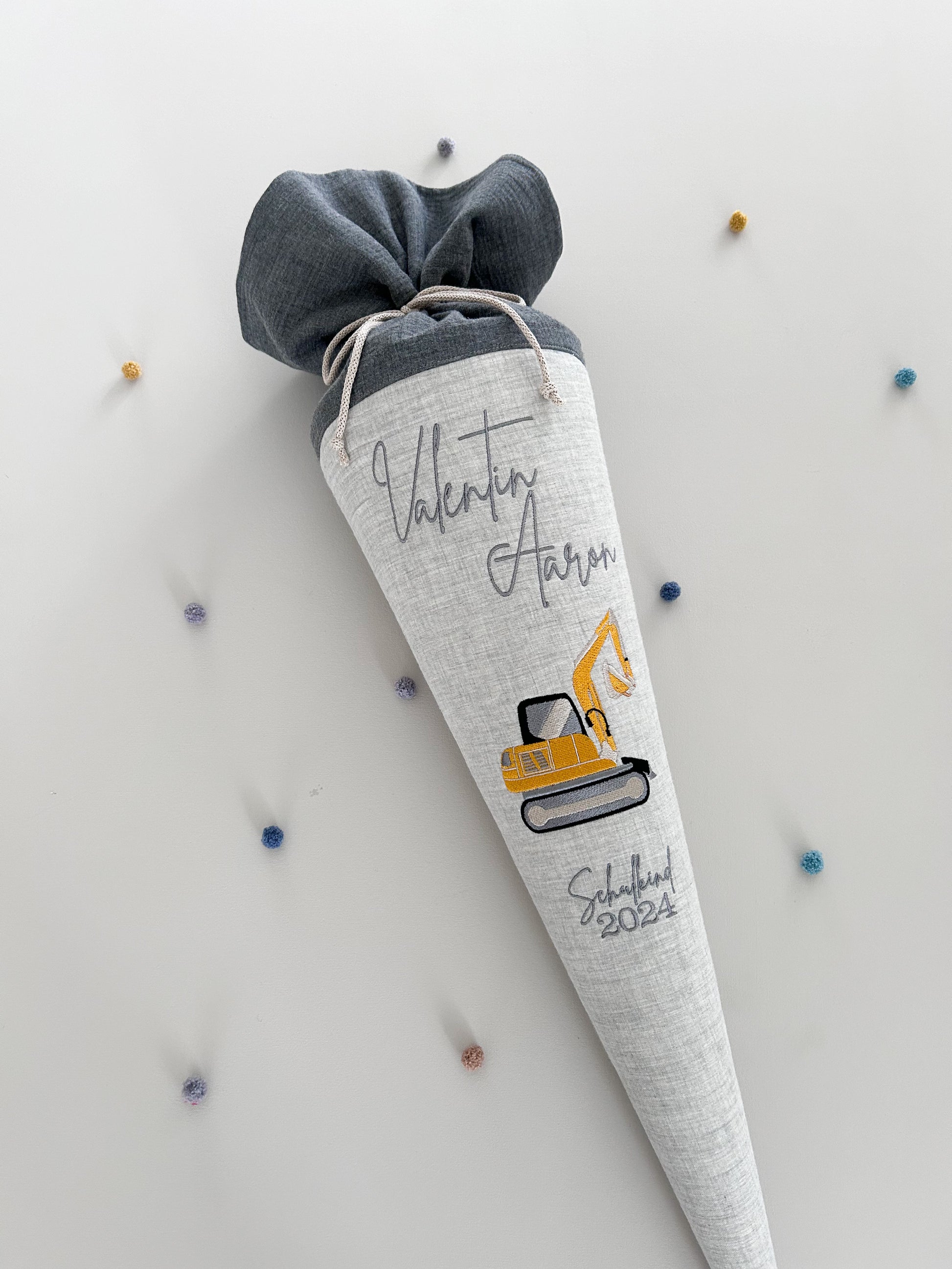 Feiere den großen Tag der Einschulung mit unserer einzigartigen Schultüte im Bagger Design.