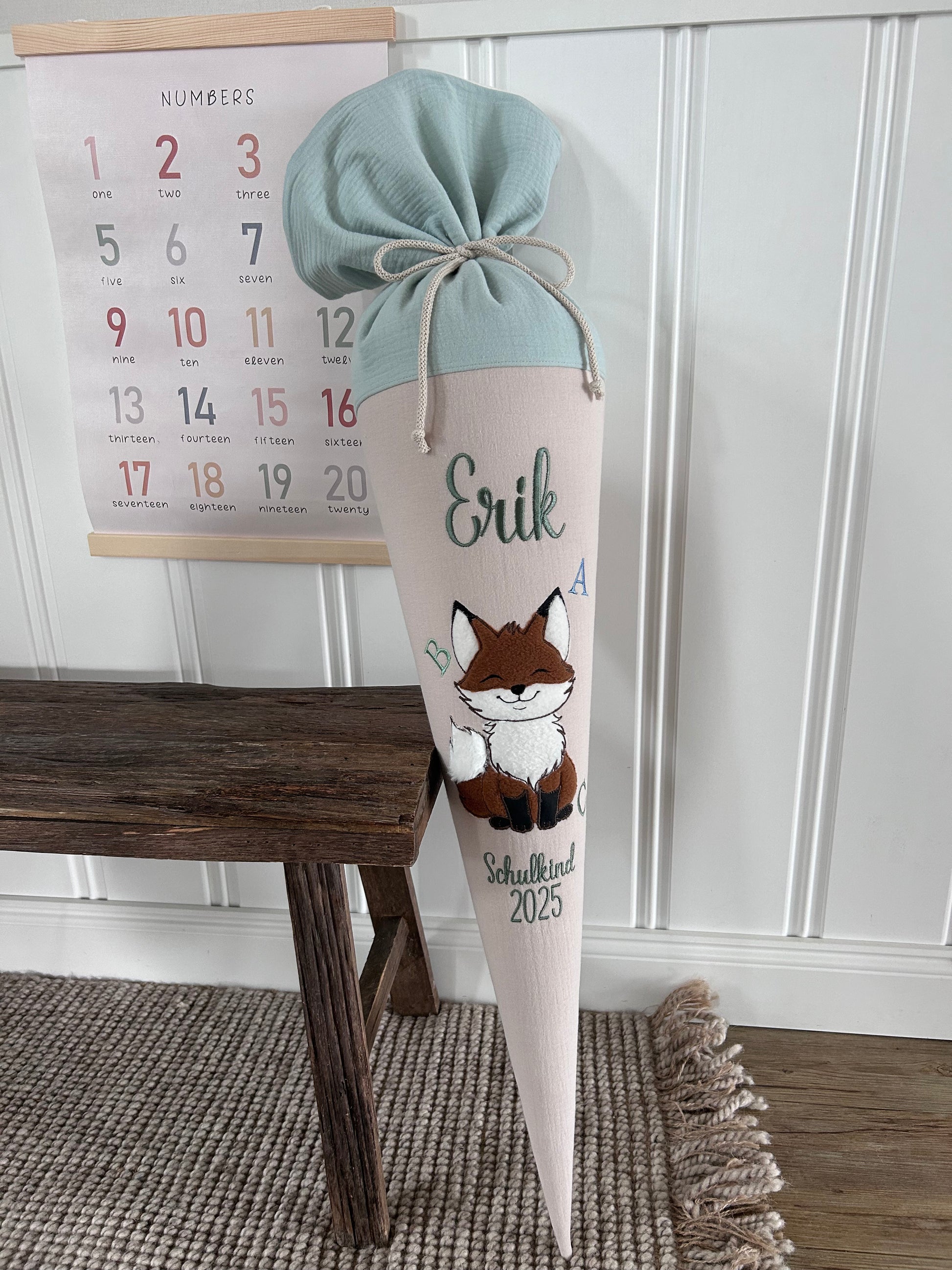 Mit dieser Schultüte kannst du deinem Schützling mit Sicherheit eine riesige Freude bereiten. Du hast die Möglichkeit, aus verschiedenen Stoffen zu wählen.