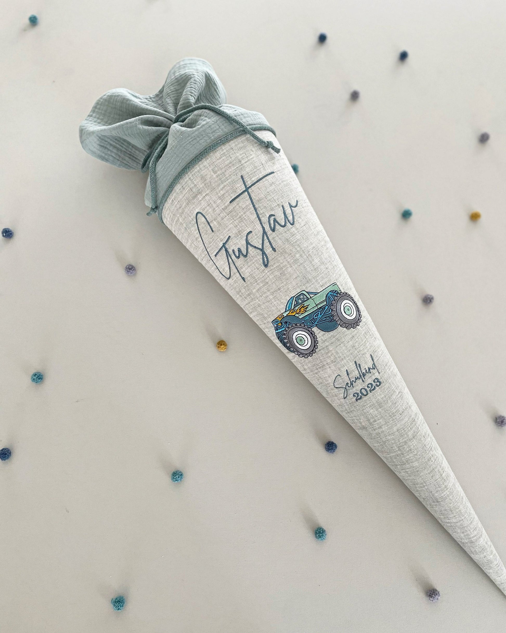Feiere den großen Tag der Einschulung mit unserer einzigartigen Schultüte im Monstertruck Design.